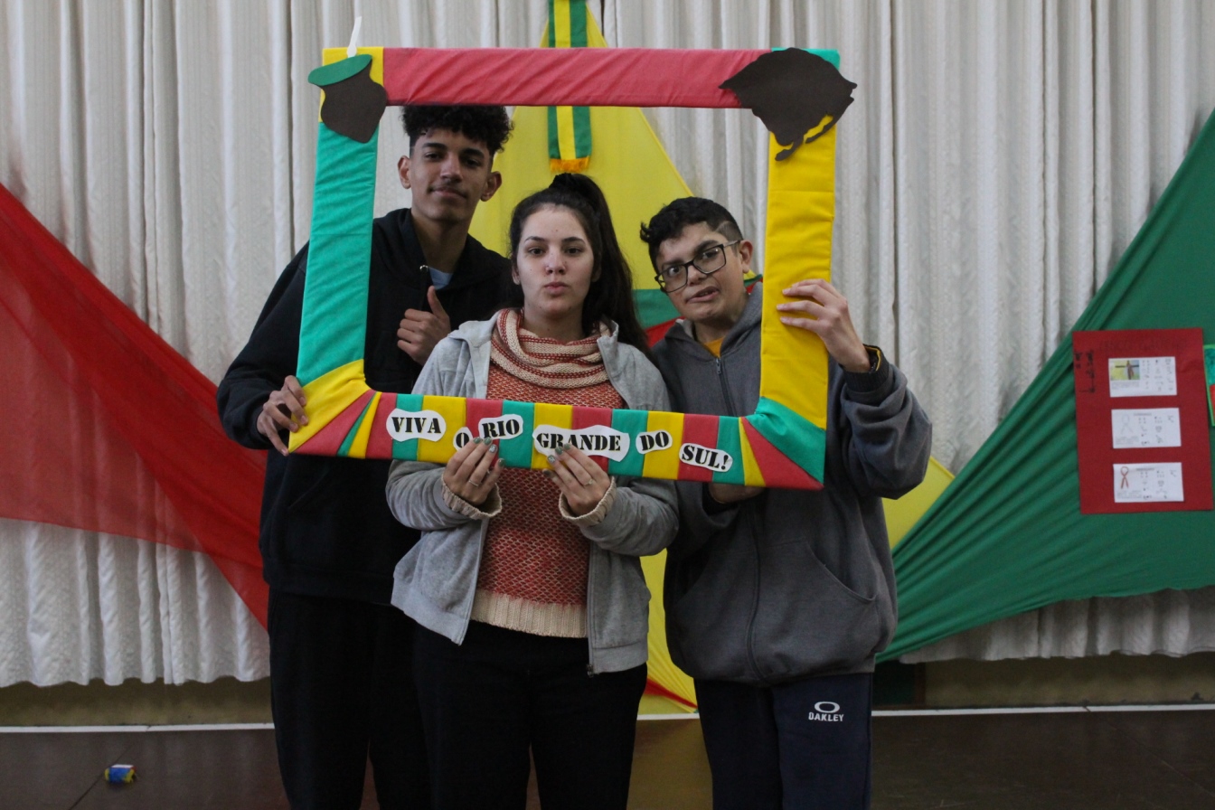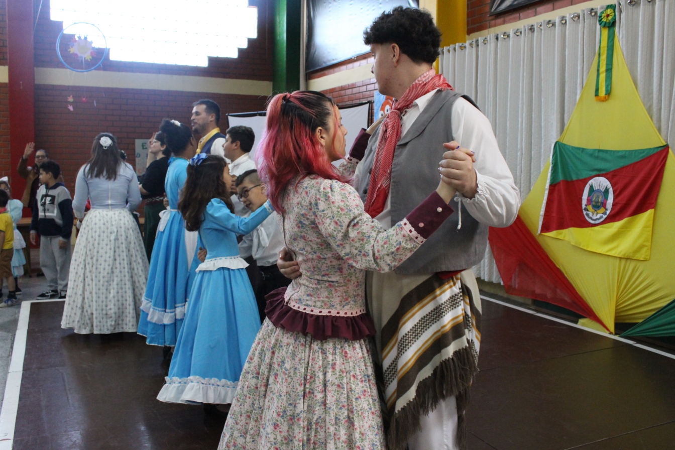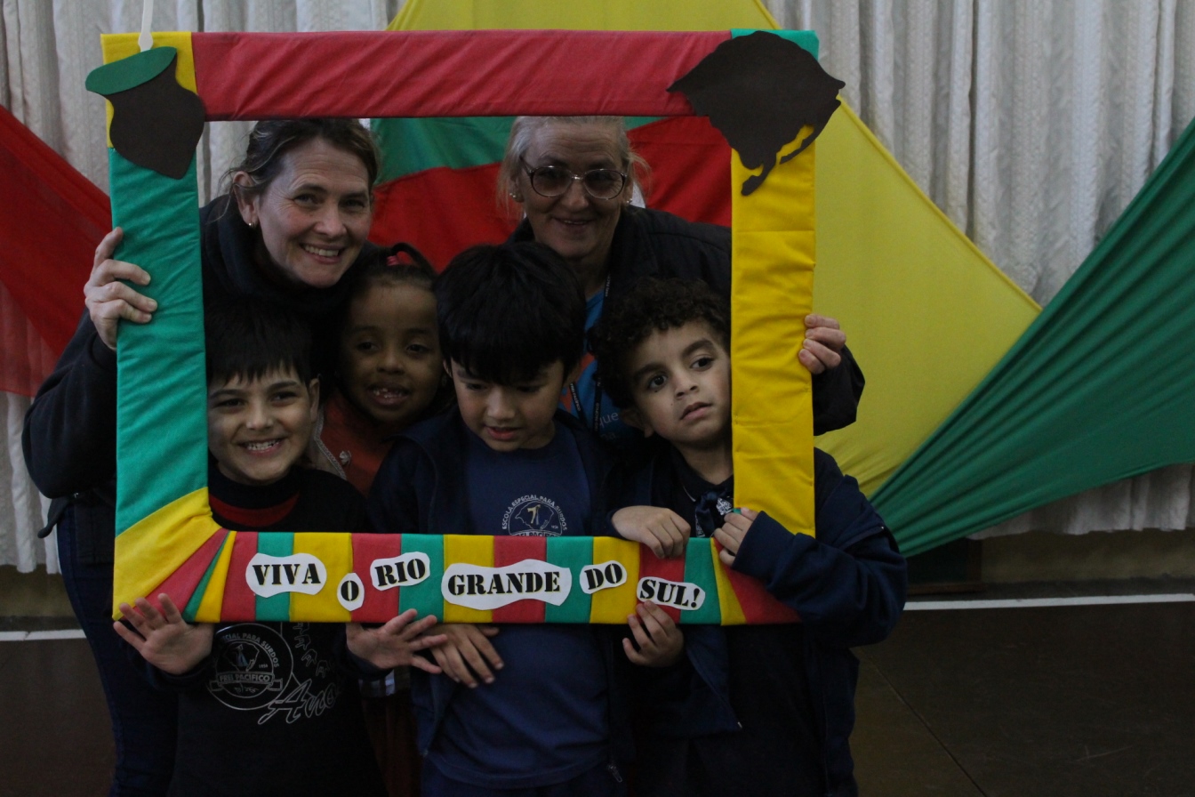 Para marcar a passagem da Semana Farroupilha e o Dia do Gaúcho, recebemos, na última sexta-feira integrantes do CTG Glaucus Saraiva. Tivemos uma tarde agradável de culto às tradições, conversando sobre dança, cultura e história. Nossos educandos apreciaram danças tradicionais, cantaram o Hino Riograndense, assistiram a declamações e apresentaram suas atividades sobre a Semana Farroupilha desenvolvidas em aula.