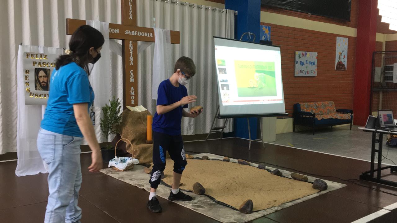 Cada turma ficou responsável por apresentar uma atividade relacionada à data e à Campanha da Fraternidade 2022 - Fraternidade e Educação/Fala com sabedoria, ensina com amor – (Cf.Pr 31,26).