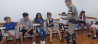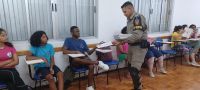 Na última segunda-feira (20), nossos educandos participaram do primeiro de dez encontros formativos do PROERD, Programa Educacional de Resistência às Drogas e à Violência. Ministrados pelo soldado Fábio, da Patrulha Escolar, os encontros tratarão de assuntos importantes para a adolescência, como drogas, tomadas de decisão e consequências, bullying, entre outros.