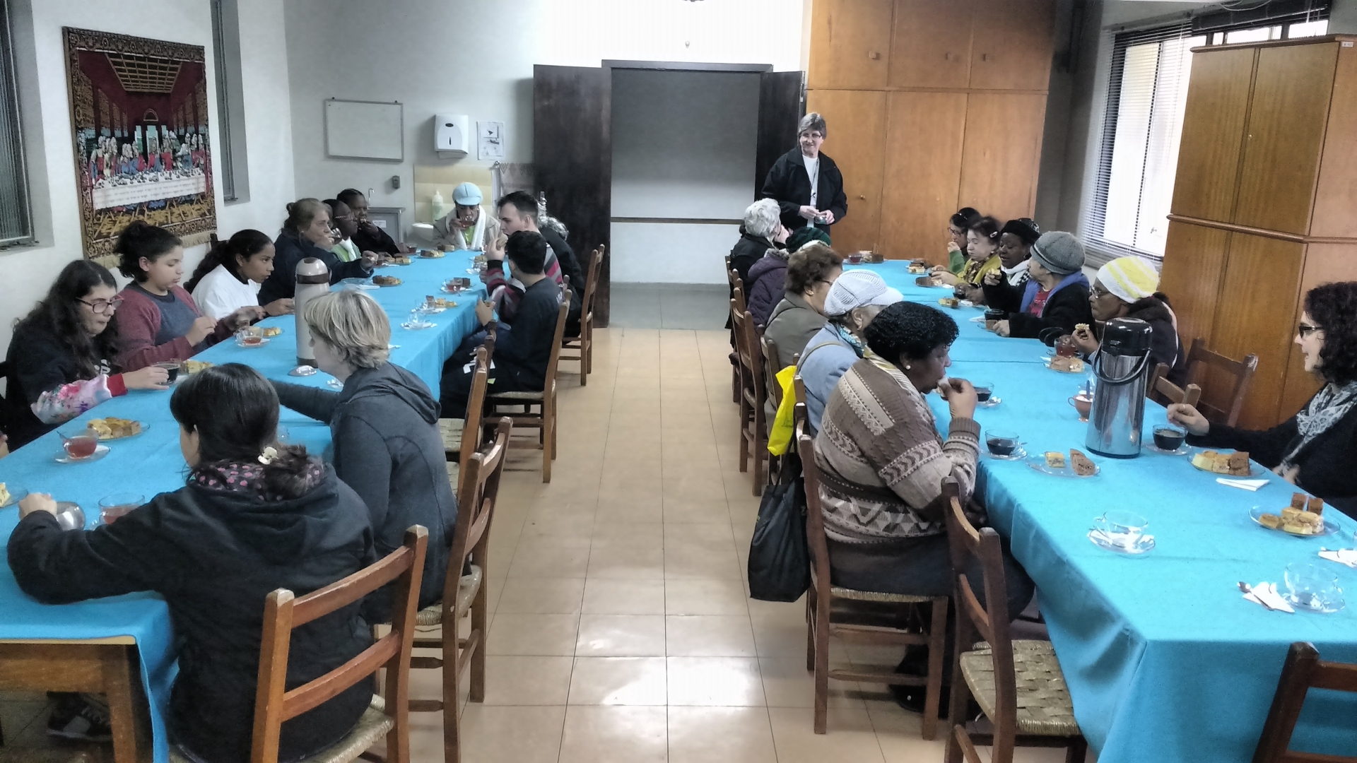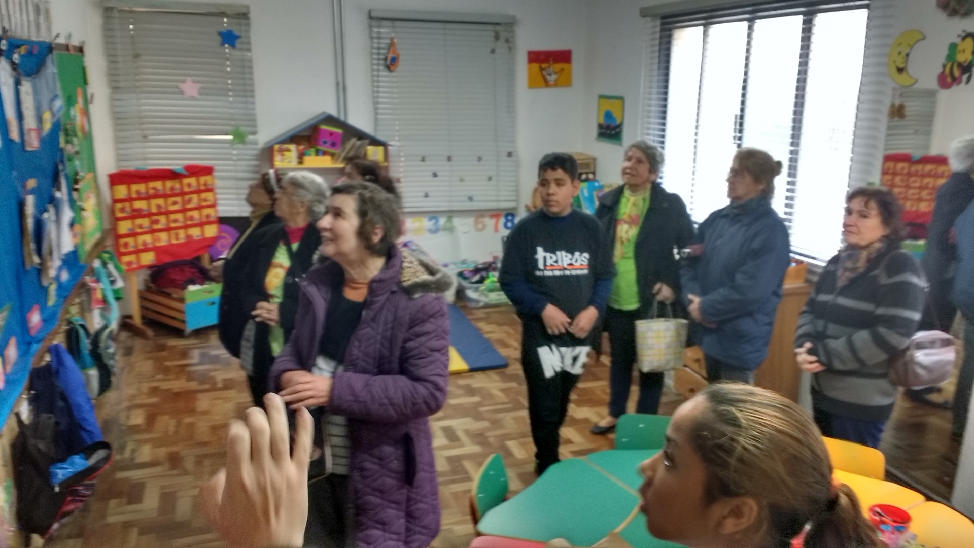 Passamos uma tarde muito agradável. Iniciamos com oração na capela, em seguida os jovens surdos realizaram uma oficina de libras e na sequência visitaram a Escola, assistiram uma apresentação de teatro, e encerramos com um gostoso lanche. Agradecemos a presença das vovós que com sua grande sabedoria e experiência de vida muito nos ensinaram.